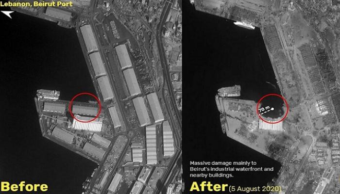 الأقمار الصناعية الروسية والفرنسية والأمريكية لمرفأ بيروت قبل وبعد الانفجار.