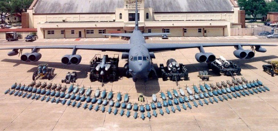 ستظل القاذفة الاستراتيجية بي-52، التي دخلت الخدمة في عام 1955، الطائرة القاذفة بعيدة المدى الرئيسية لسلاح الجو الأمريكي حتى عام 2040 على الأقل. يوجد لدى الأمريكيين — 70 قطعة من بي-52إن. نصف قطر القتال أكثر من سبعة آلاف كيلومتر، والسرعة تصل إلى 950 كيلومتر في الساعة. تأخذ كل منها على متنها 31.5 طن من الأسلحة المختلفة، بما في ذلك القنابل الدقيقة والصواريخ.