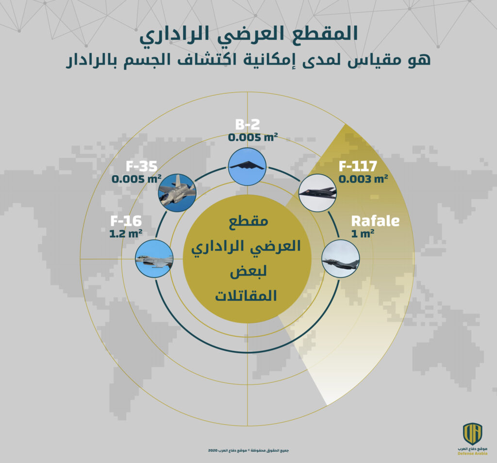 المقطع العرضي الراداري للمقاتلات او البصمة الرادارية ان صح اللتعبير Radar Cross Section عمليا هو مدى ظهور المقاتلة على شاشة الرادار.