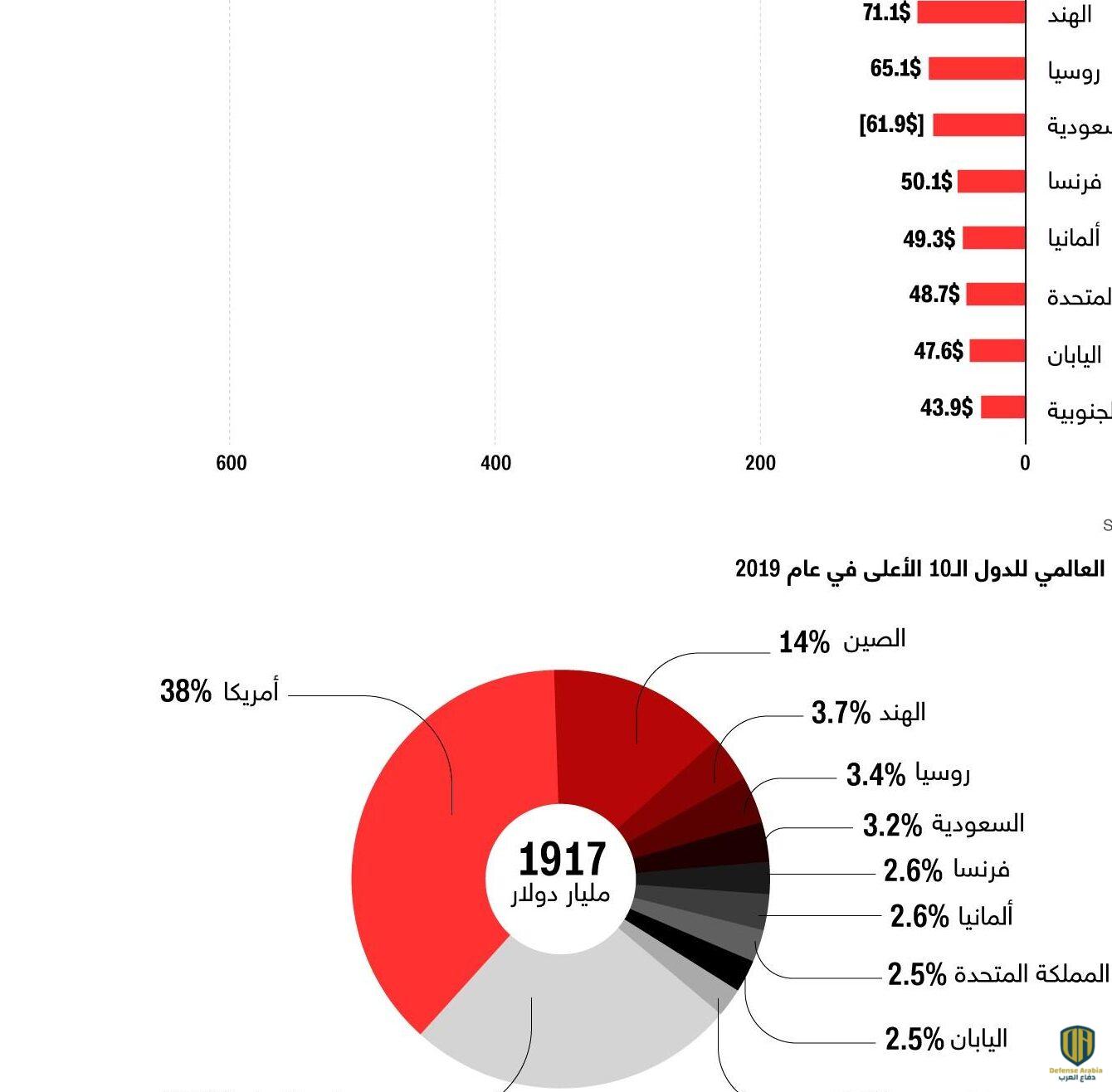 وتتعرّفوا أكثر إلى حجم الإنفاق العسكري للدول الـ10 ذات الإنفاق الأعلى في العام 2019، في الإنفوغرافيك أعلاه: