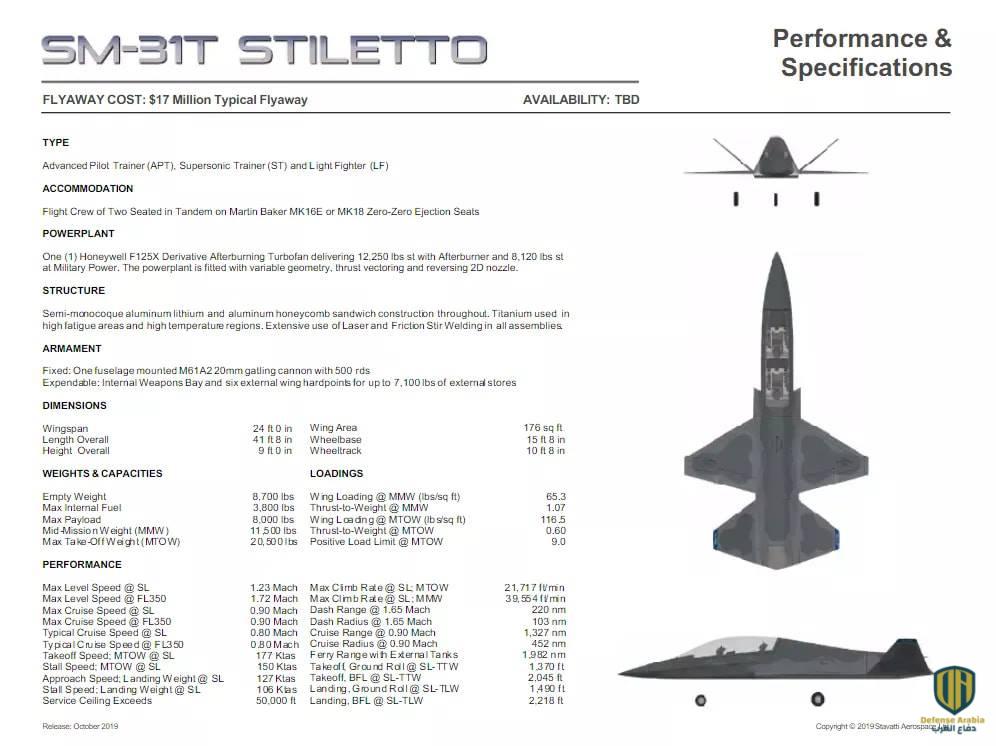 قدمت الشركة الأمريكية لمصر عرضين مختلفين أحدهما عبارة عن طائرة تدريب وهجوم أرضي تملك محرك طراز “Honeywell F124” ومقعدين ثنائيين من طراز “MK18” أو “CES-5” وتقدر تكلفة تشغيلها لساعة الطيران الواحدة 4000 دولار.