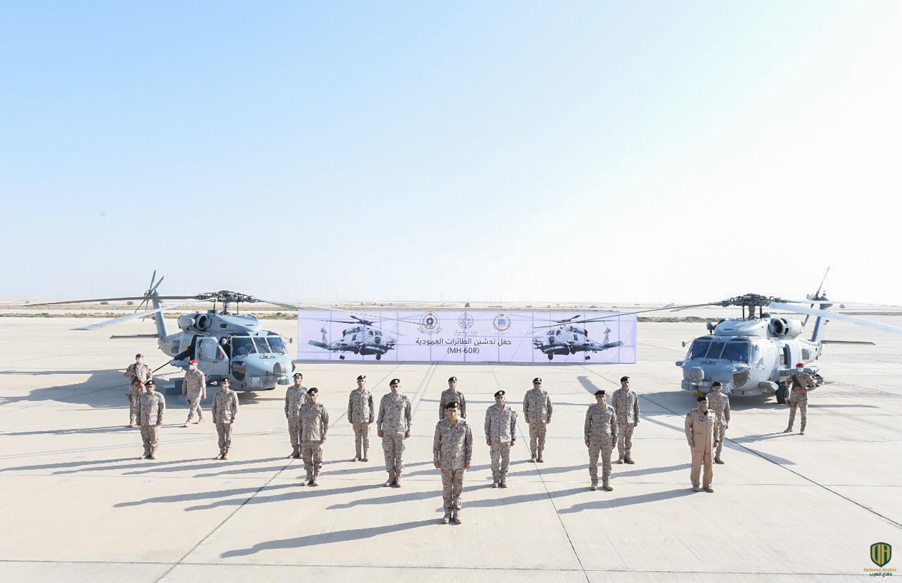 دشنت القوات البحرية الملكية السعودية الطائرات العمودية البحرية “إم إتش – 60 آر”، وهي مروحيات قتالية متعددة المهام تصنعها الولايات المتحدة الأمريكية.