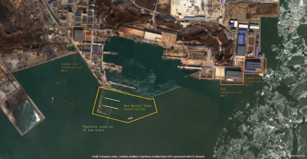 تشير الصور أيضًا إلى أن الصين بدأت في بناء ميناء جديد لدعم زيادة إنتاج الغواصات النووية.