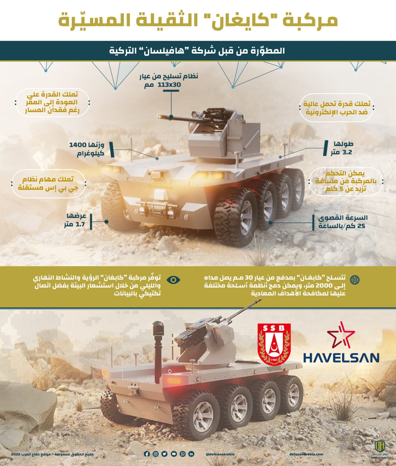 تعرض شركة “هافيلسان”، أيضاً خلال المعرض، مركبتها الثقيلة غير المأهولة “كابغان” Kapgan، التي أثبتت نفسها بأدائها الممتاز وقدراتها الفائقة.