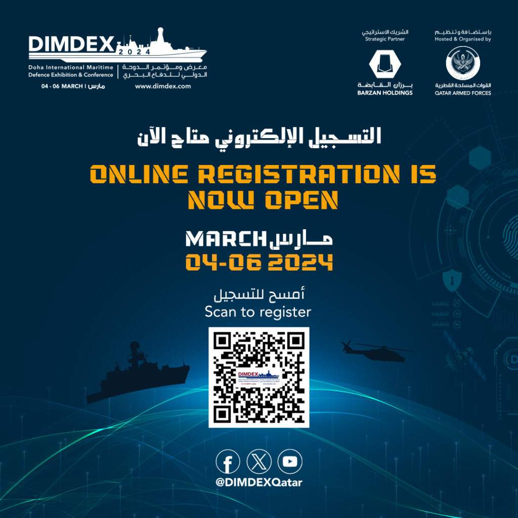 الدوحة، قطر، 11 ديسمبر 2023: أعلنت اللجنة المنظمة لمعرض ومؤتمر الدوحة الدولي للدفاع البحري (ديمدكس 2024) عن إقامة النسخة الثامنة من الحدث في الفترة ما بين 4 و 6 مارس 2024 في مركز قطر الوطني للمؤتمرات. وأكدت اللجنة المنظمة على استعدادها الكامل لاستضافة نسخة جديدة في ظل حضور قوي وبارز من العارضين والمشاركين على الصعيدين المحلي والدولي.