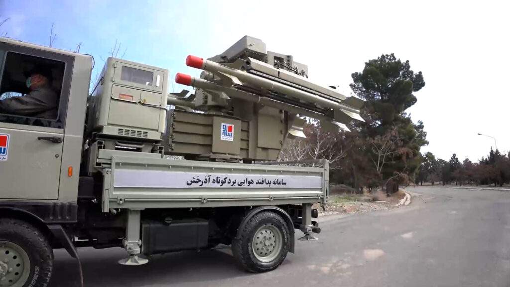 “آذرخش”، المنظومة المخصصة للدفاع الجوي منخفض الارتفاع، قادرة على تحديد الأهداف وتدميرها على مدى 50 كيلومتراً، مع إمكانية تجهيزها بأربعة صواريخ جاهزة للإطلاق.