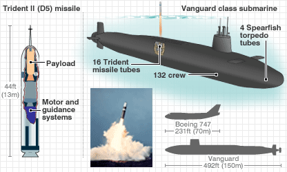 يُشار إلى أن منظومة الردع النووي البريطانية تعتمد على أسطول مؤلف من أربع غواصات تعمل بالطاقة النووية ومجهزة بنظام الصواريخ الباليستية “ترايدنت” أميركي الصنع، والذي تصنعه شركة “لوكهيد مارتن”، بينما يتم تصنيع الرؤوس الحربية في بريطانيا.