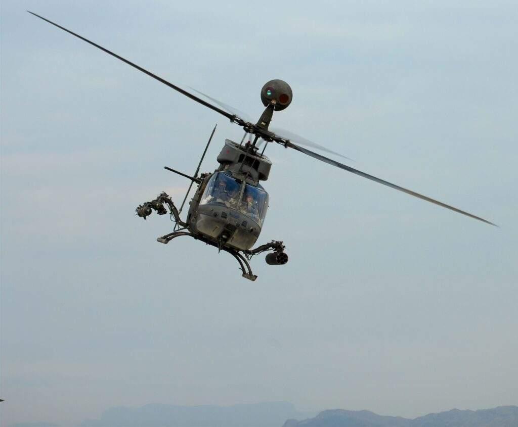 إن سمعة Kiowa Warrior الواسعة كطائرة ذات قدرات ومتانة عالية قد بدأت مع OH-58A والتي تم إطلاقها في العام 1968. ولقد خضعت لجولتين من التعديلات والتحديثات لحين تحليق OH-58D، المحقِّقة للأرقام القياسية، في العام 1983، وذلك مع محرّكها ونظام نقل الحركة اللذين جرى تطويرهما. وكانت مروحية الاستطلاع المسلَّحة ذات المحرّك المفرَد والأربع شفرات أول هليكوبتر للجيش الأمريكي بقمرة زجاجية بالكامل، وتتضمّن نظام الحماية WSPS المصمَّم لمنع ضرب الأسلاك وخطوط الطاقة نظراً لطبيعة المهام التي تقوم بها على علو منخفض. ولقد أثبت نظام WSPS نجاحاً كبيراً، وبالتالي تم تعديله كي يتلاءم تقريباً مع كل مروحية أخرى ضمن الأسطول الأمريكي.