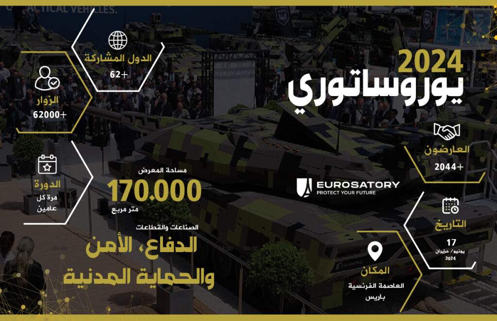 يُعدّ معرض “يوروساتوري”، المقرّر عقده في العاصمة الفرنسية باريس من 17 إلى 21 يونيو/ حزيران 2024، حدثاً استثنائياً يجمع نخبة من قادة صناعة الدفاع والأمن، وكبار المسؤولين العسكريين، وصنّاع السياسات، والخبراء المتخصصين من مختلف أنحاء العالم.