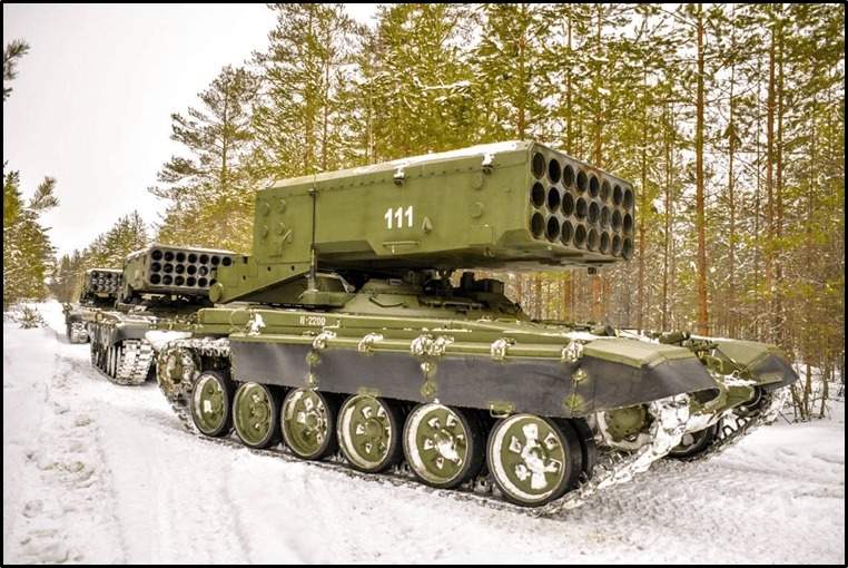 - TOS-1: يعد نظام روسي يُركب على هيكل دبابة T-72، حيث يتميز بمدى فعال يمكنه من تنفيذ ضربات دقيقة في ساحة المعركة.