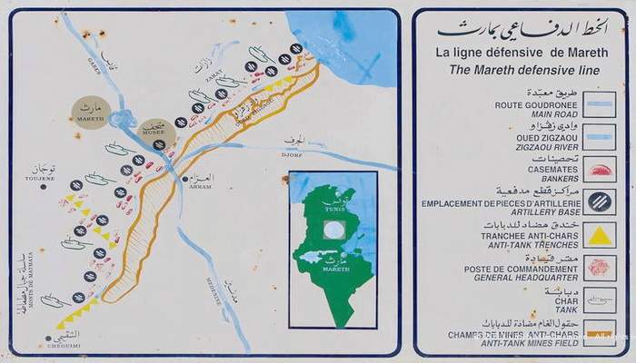 يرجع بناء خـط مارث الدفـاعي المحصن بمنطقة مارث التابعة لولاية قابس بالجنـوب التونسي، إلى ما بين عام 1936م وعام 1940م من قبل الجيوش الفرنسية قبل الحرب العالمية الثانية وذلك لصد أي هجوم محتمل على الأراضي التونسية من طرف القوات الإيطالية إنطلاقاً من الأراضي الليبية ، يمتد هذا الخط الذي سمي بخط ماجينو الصحراوي على طول 45 كلم يربط بين البحر ومرتفعات جبال مطماطة ويعتمد أساسا على وادي زقزاو ويحتوي على 40 نقطة حصينة للمشاة و8 حصون كبيرة للمدفعية و15 مركزا للقيادة و 28 نقطة مساندة بنيت كلّها بالإسمنت المسلح وعززت بمواقع المدفعية المضادة للدبابات ومدارج للطائرات المجهزة أنشأت في عمق كبير خلف مانع قوي من الألغام المضادة للدبابات والأفراد مسيج بالأسلاك الشائكة.