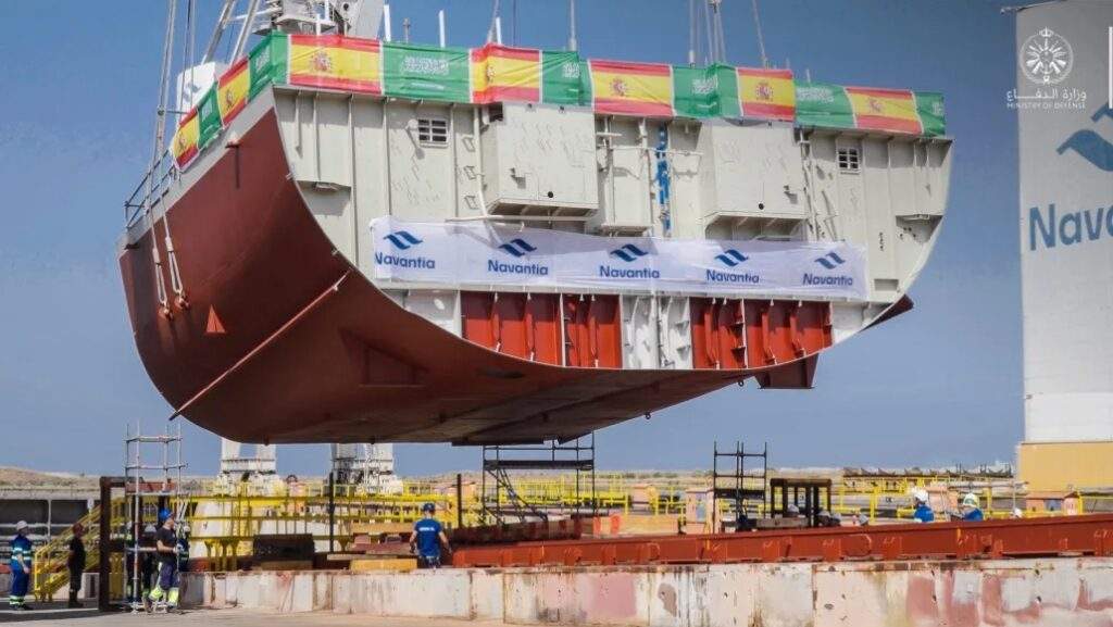 القوات البحرية السعودية تحتفي بترسية سفينة “المدينة” في حوض بناء السفن التابع لشركة “نافانتيا” الإسبانية