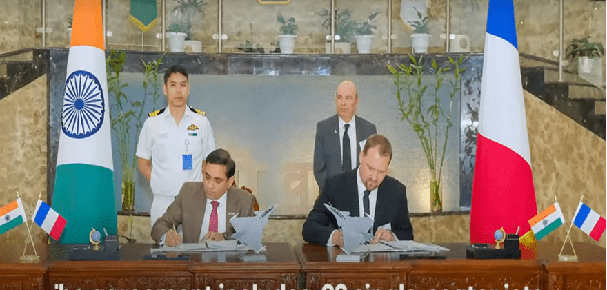 وقّعت الهند وفرنسا، في 28 أبريل/ نيسان الماضي، بمدينة سان كلو الفرنسية، اتفاقية حكومية بحضور رئيس مجلس الإدارة والرئيس التنفيذي لشركة “داسو للطيران”، إريك ترابييه، لشراء 26 مقاتلة من طراز “رافال إم – Rafale M” المخصصة للبحرية الهندية، ما يجعل الهند أول دولة خارج فرنسا تعتمد هذه النسخة البحرية من مقاتلات رافال.